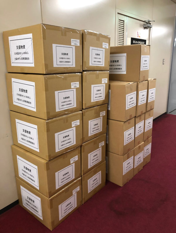 令和元年10月13日、台風19号によって記録的な豪雨となり、河川の氾濫により甚大な被害が各地にもたらされました。その後も度重なる豪雨によって、各地の復興作業は難航し、避難所で困難な生活を強いられている被災されました方々に、少しでもお役立ていただきたく、先日お送りさせていただきました宮城県黒川郡大郷町に引き続き、福島県いわき市の市役所と連絡をとり、追加で個別包装した日本製白フェイスタオルを、100枚ずつ、20ケースお送りいたしました。